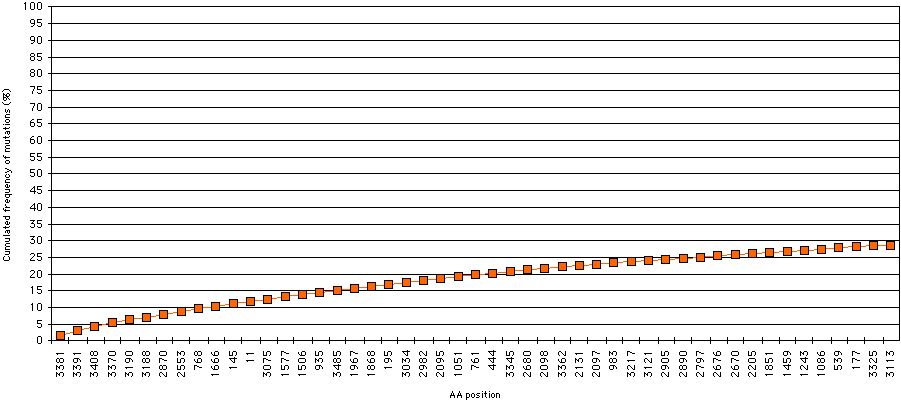 Cumulated frequency chart (50 most frequent mutations only) |