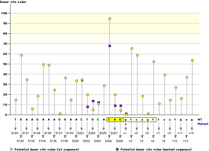 Splice site type Wild type sequence CV Mutant type sequence CV Variation (%)