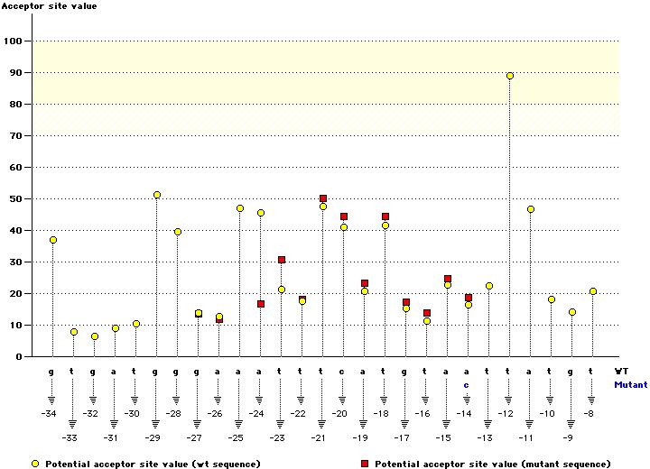 | Splice site type | Wild type sequence | CV | Mutant type sequence | CV | Variation (%) | |||||