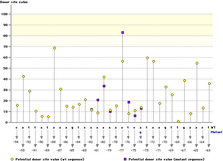 | Splice site type | Wild type sequence | CV | Mutant type sequence | CV | Variation (%) | |||||